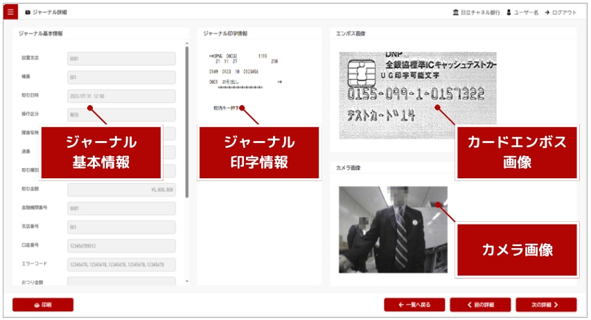 ATMジャーナルデータの検索結果画面